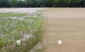 해안지역 운동장의 잡초 문제, 소금살포로 환경 개선!